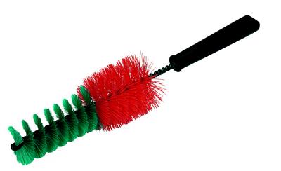 Fælgbørste fra Vikan Transport serie. Galvaniseret tråd og rød/grøn poly. Specialprodukt til rengøring af alu-fælge. Tåler 100 grader.