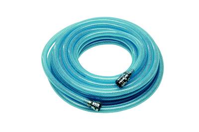 Til rengøring hvor der bruges koldt vand max. 40° C. 1/2"" FDA godkendt PVC slange klar til brug. Monteret med 1/2"" koblingshus i begge ender af slangen. Hanenippel til vandhane medfølger til 1/2"", 3/4"" og M22x1 gevindtyper.