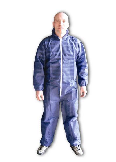 Let engangs dragt i blå, i 50 grams polypropylene til lettere smudsigt arbejde. Også god som overtræksdragt til besøgende. Engangsdragten er med hætte og lynlås og er let og åndbar, med elastik i hætten og i livet samt ved håndled og ankler.