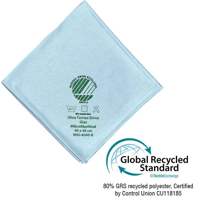 Anvendes på glas, spejle, stål, krom samt lakerede og andre hårde overflader. Anvendes uden glaspolerings- og rengøringsmidler. Strikketeknologien giver en stærk klud ift. andre vævningsmetoder. Efterlader overfladen uden fnug eller striber. Tåler klor og sprit. Anvendes tør eller fugtig. Fremstillet af 80% genanvendelige fibre fra indsamlet forbrugeraffald certificeret af Global Recycled Standard (GRS). Godkendt til autoklavering. Produktet vil ikke foretage slitage eller skader på overflader ved anbefalet anvendelse. Rengør effektivt blot med vand.