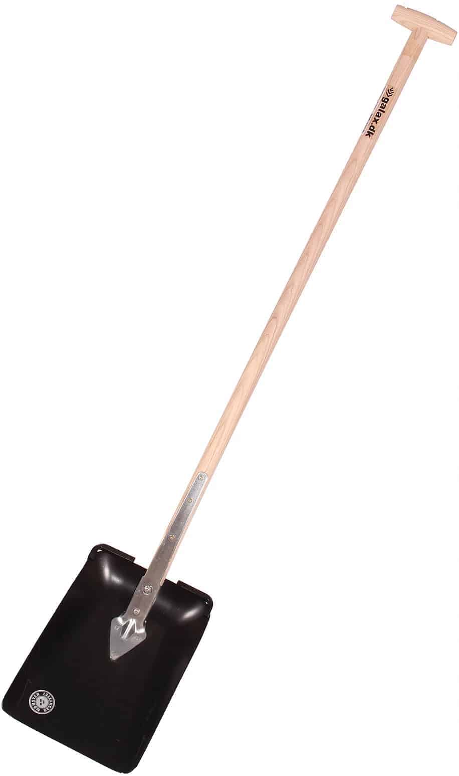 Danskproduceret graveskovl fra galax, med asketræsskaft, krykke og hærdet skovlblad.