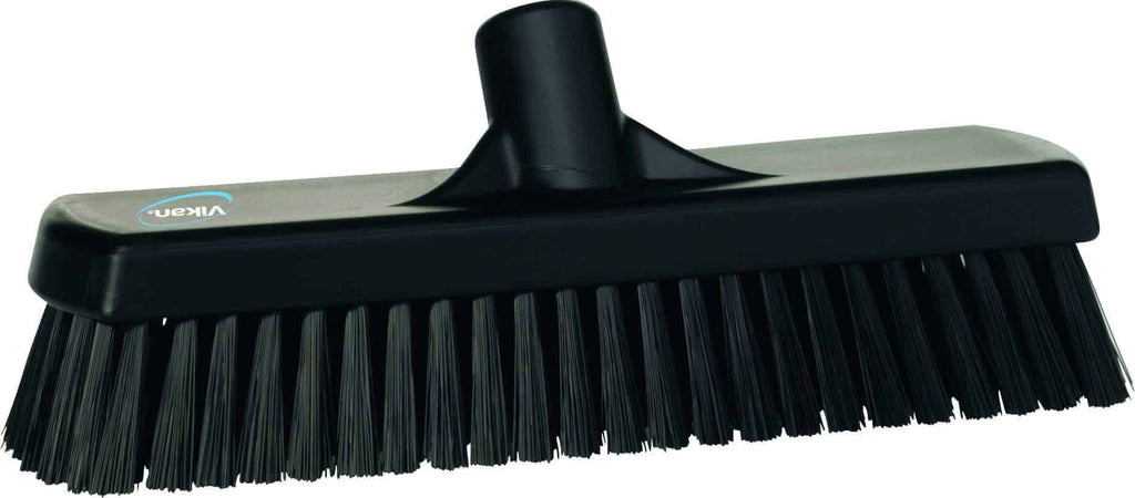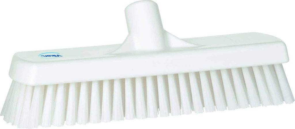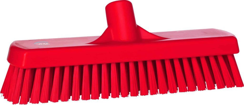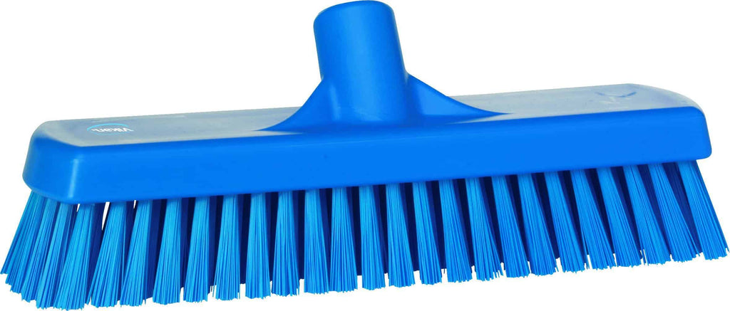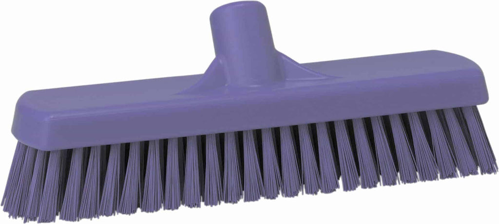 Stiv 30 cm gulvskrubbe til brug i fødevareindustrien til rengøring af gulve. Kan bruges til farvestyring, så krydskontaminering undgås.