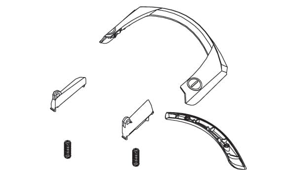 Håndtag til Coupe, rød/metal komplet med alle dele som på billede/stregtegningen.
