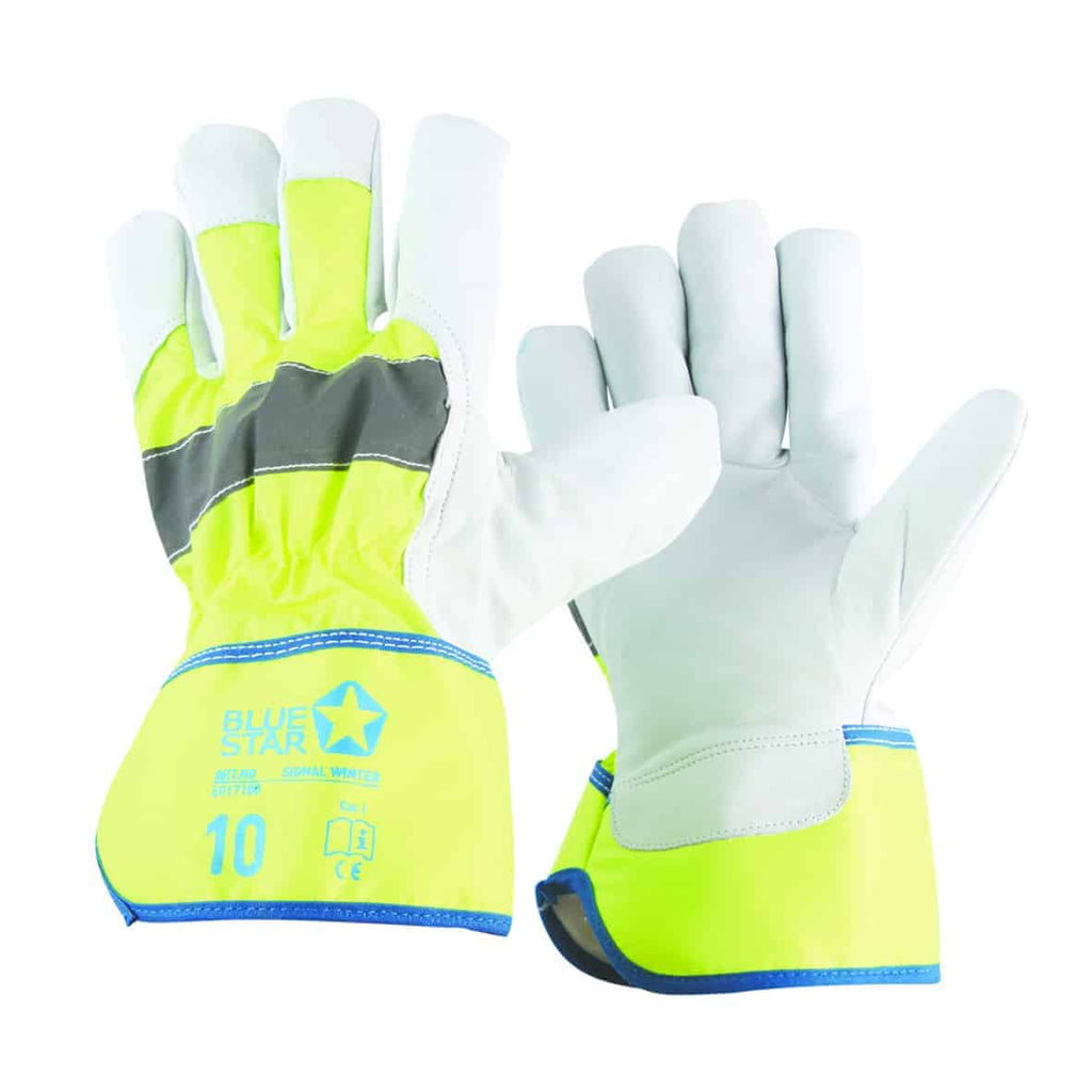 Vinterhandske af blødt gedeskind med varmt foer og Hi-Viz vandafvisende materiale på overhånden og manchet. God kvalitet. Velegnet til arbejde i koldt miljø og hvor synlighed er påkrævet.