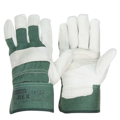 Kraftigt oksehud med forstærkning i håndfladen. Grøn overhånd af lærred med indsyet elastik. Gummieret manchet. Prisbillig model. Egnet til lettere industriarbejde.