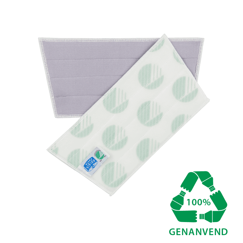 Moppen sprayes med en forstøver med vand. Tåler klor og sprit pga. den høje råvarekvalitet.