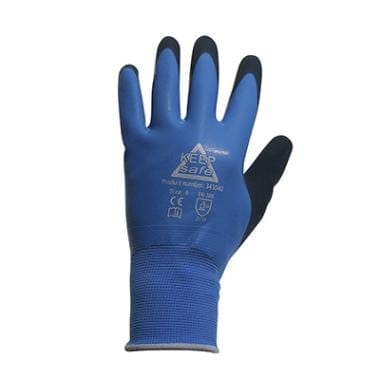 Sømløs strikhandske med dobbelt dypning af latex (naturgummi). Den yderste latexbelægning har strukturmønster, der giver handsken et rigtigt godt greb på våde overflader. Handsken er vandtæt, fleksibel og har høj komfort. Slidstærkt 13 G nylon foer. Kat II EN 388 2031