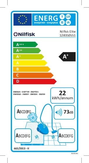 Ekstra høj rengøringsevne – Sugestyrke karakter på hårdt gulv får Nilfisk Elite A, og sugestyrke karakter på tæpper får den A eller B. Denne ydeevner opnås gennem optimering af hele maskinen uden at gå på kompromis med energiforbrug og brugervenlighed.