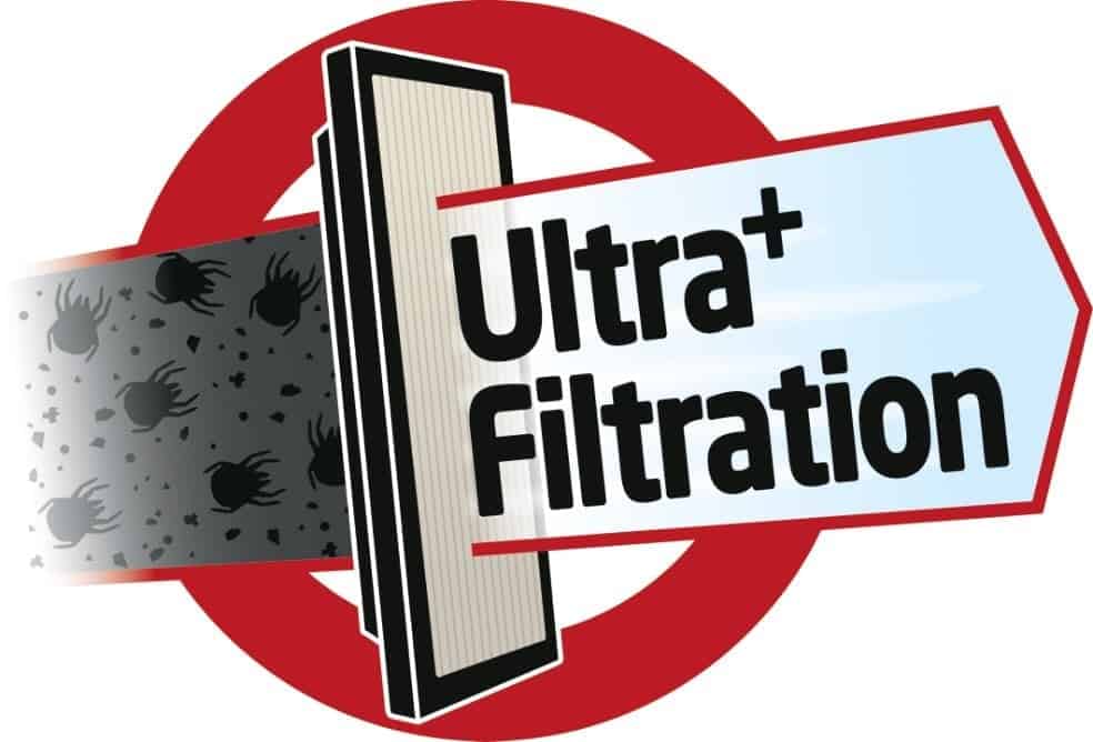 - Ultra+ Filtration: Microfiber støvpose, lufttæt konstruktion og HEPA 14 filter. Din bedste beskyttelse mod allergener fra dyrehår, husstøvmider og deres ekskrementer