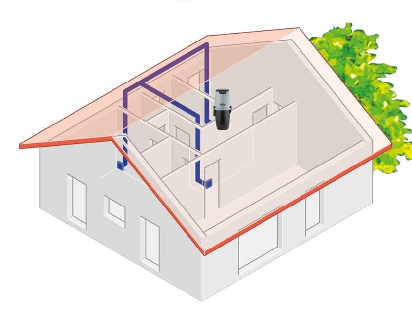 Konceptet er simpelt: Sæt støvsugerslangen i sugekontakten, start støvsugningen og fokus på rengøringen, uden balancering og vægtløftning. Støvet er bragt gennem rørene til en pose eller beholder i den centrale støvsuger, placeret i garagen, kælderen eller på loftet. Udsugningsluften føre uden for huset.
