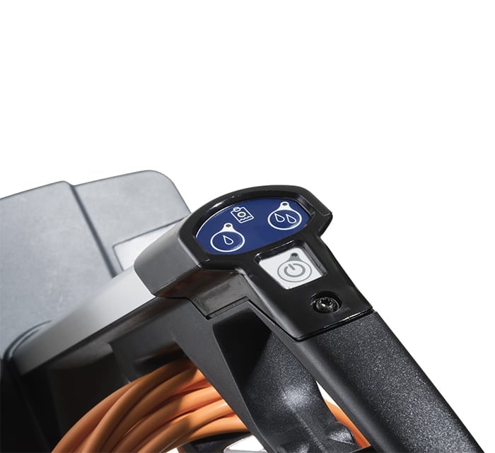 Maskinen har to indstillinger af dosering, der sikrer effektiv rengøring, samt en LED advarselslampe, der lyser rødt, når der ikke er mere sæbevand