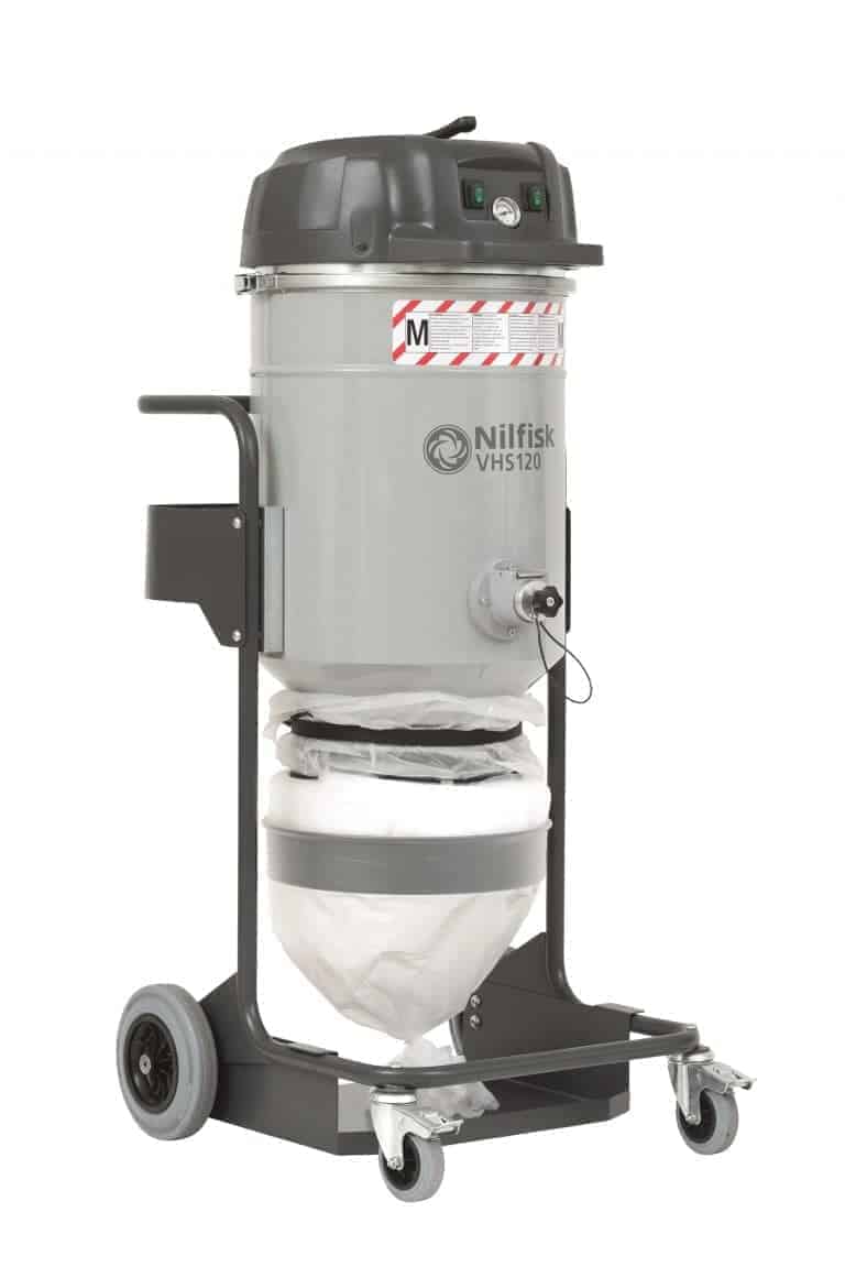 Serien VHS120 klasse M/H (med tredjeparts-certificering) repræsenterer det bedste indenfor industristøvsugere til opsamling af sundhedsfarligt støv. Støvsugerne i klasse M og H er udstyret med et M-klasse filter med limede sømme, som sikrer den højeste filtrering, samt et Longopac®-system til nem og sikker bortskaffelse af det opsamlede støv. Absolut filteret HEPA H14, som er standard på HC modellen, tilbageholder selv det fineste støv. 2 by-pass motorer sikrer den højeste ydeevne og funktionalitet i et meget kompakt design - Longopac® versioner måler 630 x 628 x 1.300 mm. Den manuelle filterryster sikrer en nem og effektiv rengøring af hovedfilteret, så man hele tiden sikres den bedste ydeevne, hvilket kan kontrolleres vha. trykmåleren på motorhovedet. Tilbehør kan opbevares i tilbehørskurv, som er standard på maskiner i klasse M og H.