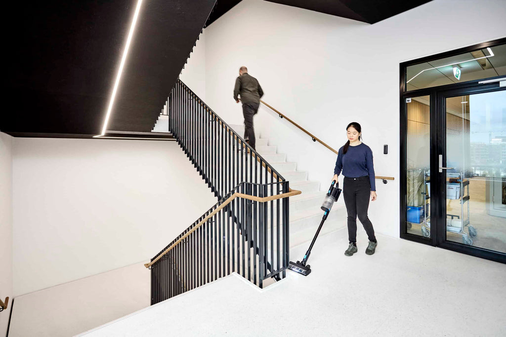 - Intet stik og ingen ledning at snuble over – VU200 drives af et litiumbatteri, der er nemt at udskifte og hurtigt at genoplade for tidseffektiv rengøring