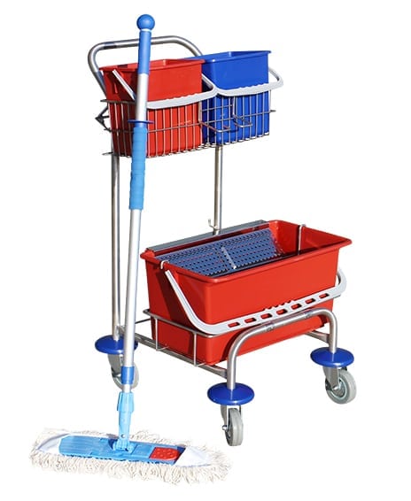 Basis rengøringsvogn med 2 stk. 6 lt. farvekodet spande samt stor sækkeholder.