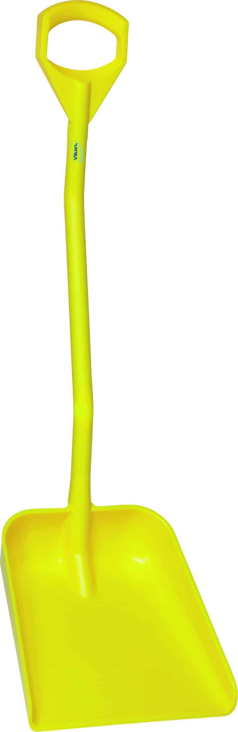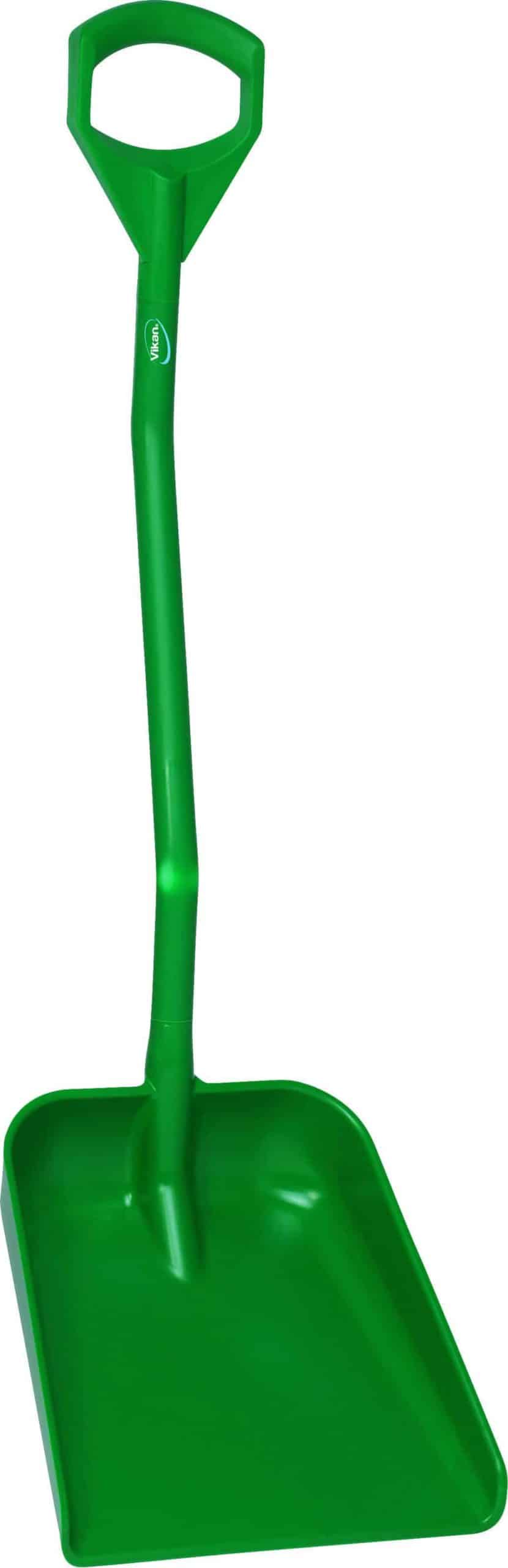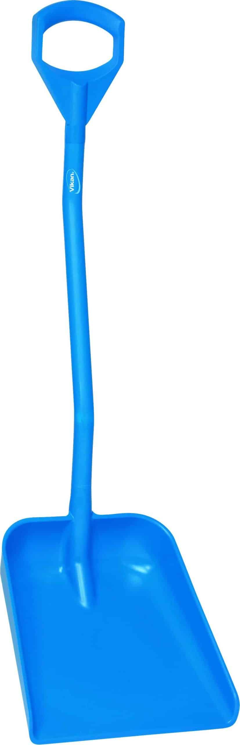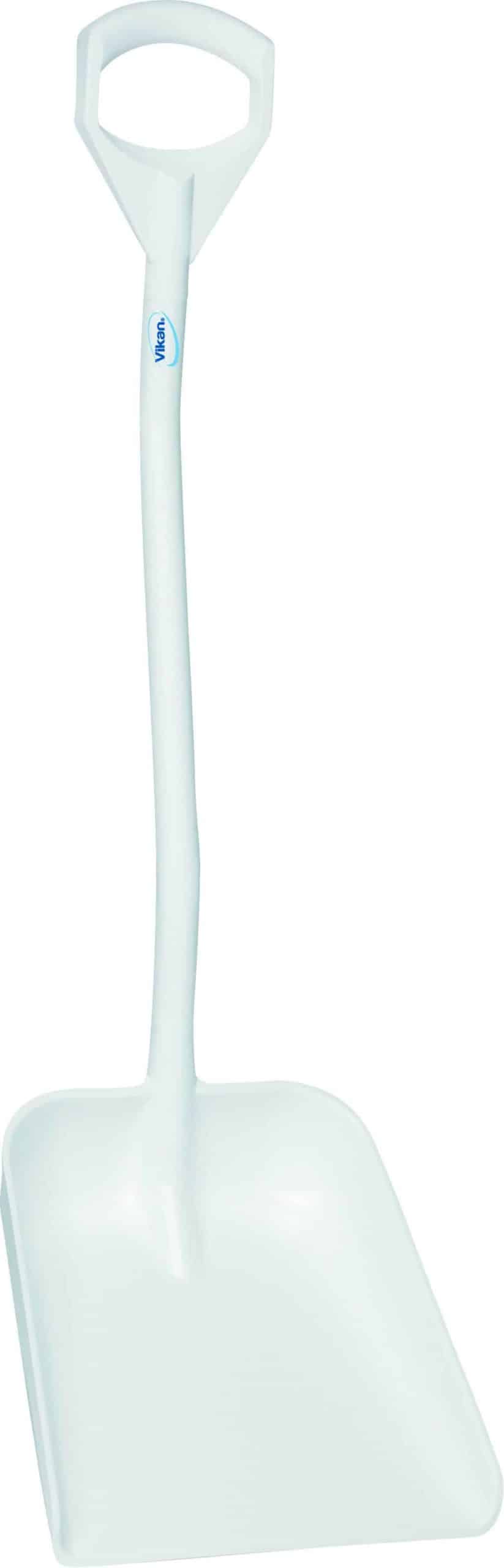 Ergonomisk stabil skovl med kort skaft og stort blad. Velegnet til fødevareindustrien. Kan bruges til farvestyring, så krydskontaminering undgås.