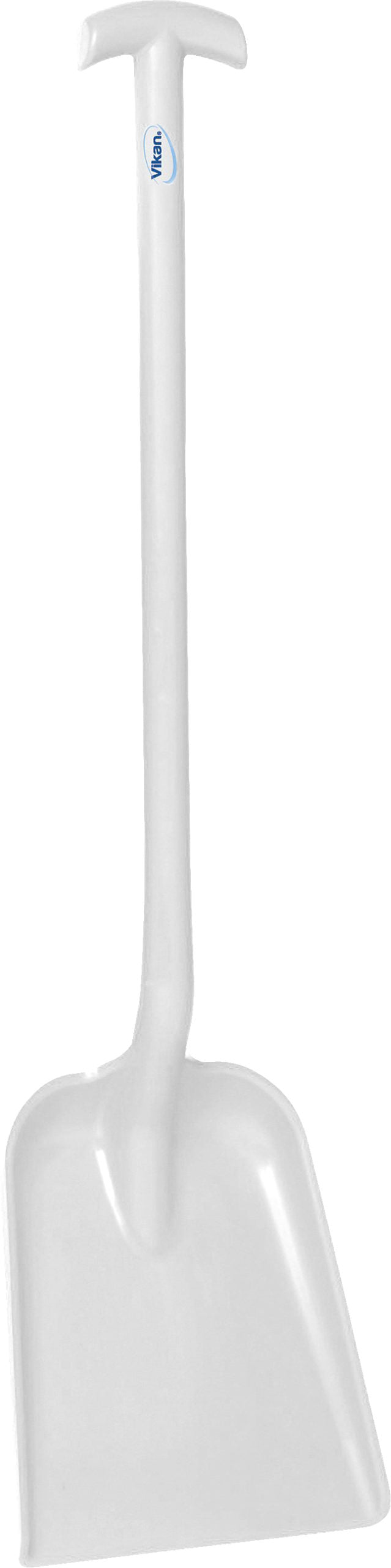 Stabil skovl med kort skaft med T-greb og standard blad. Velegnet til fødevareindustrien. Kan bruges til farvestyring, så krydskontaminering undgås.