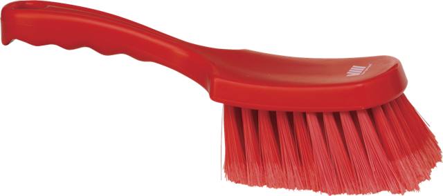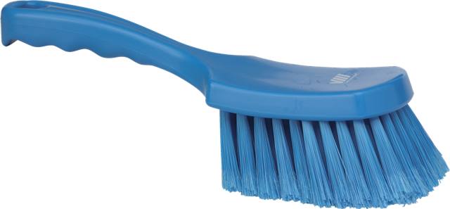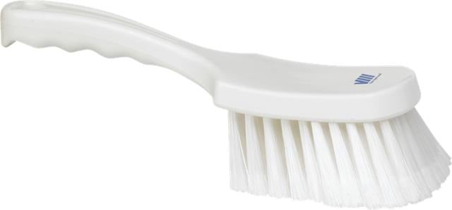 Blød håndbørste 24 cm. Velegnet i fødevareindustrien til rengøring af bl.a. over- og underkanter af borde, spande, mandeluger, fodtøj og andet udstyr. Velegnet til farvestyring, så krydskontaminering undgås.