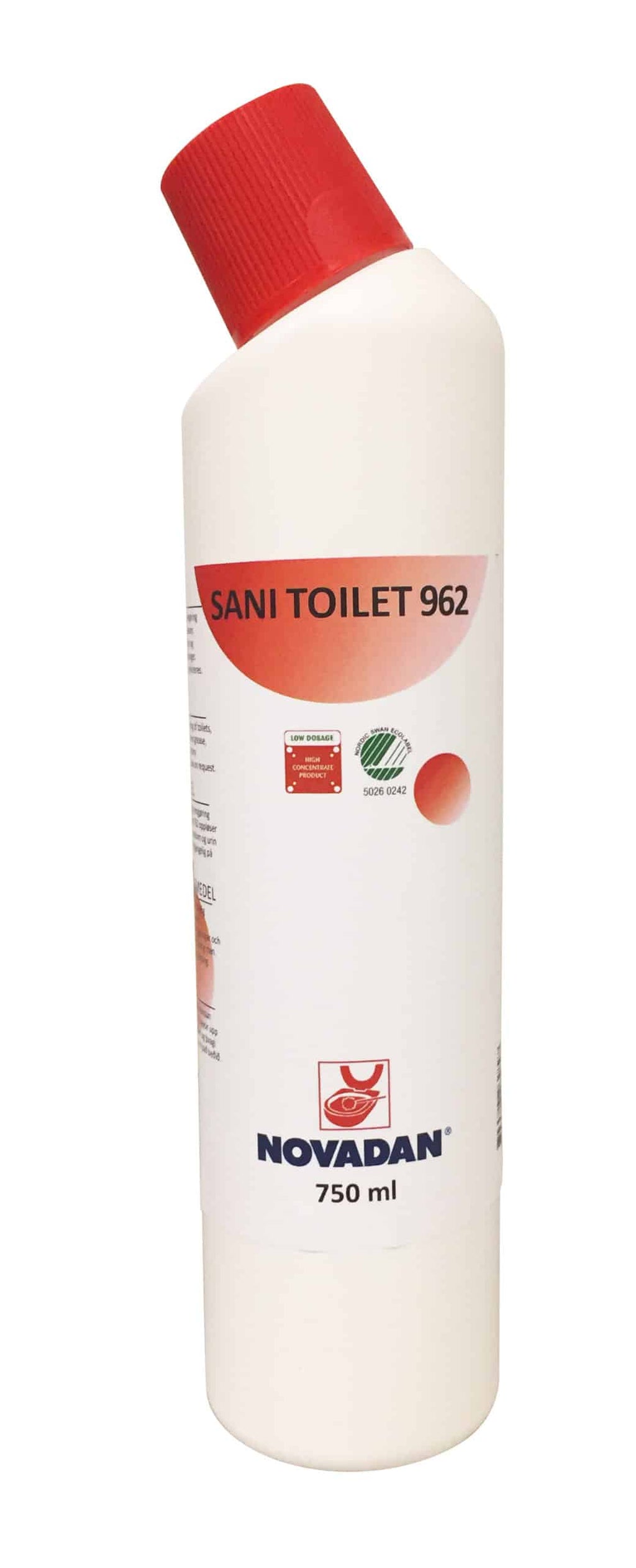 Sani Toilet 962 anvendes til daglig rengøring af WC, kummer, urinaler, uringlas og bækkener. Sani Toilet 962 fjerner effektivt kalk- og rustbelægninger, også under skyllekanten i WC kummer.