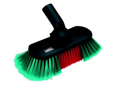 Autobørste med vandgennemløb. Børsten er udført i massiv sort polypropylen med bløde røde/grønne polyester filamenter. Patenteret børste, vinkeljusterbar for optimal rengøringskomfort. Anvendes ofte, når der rengøres med vand fra spand. Børsten har skråtstillede børstehår, således at den når ud i alle hjørner.