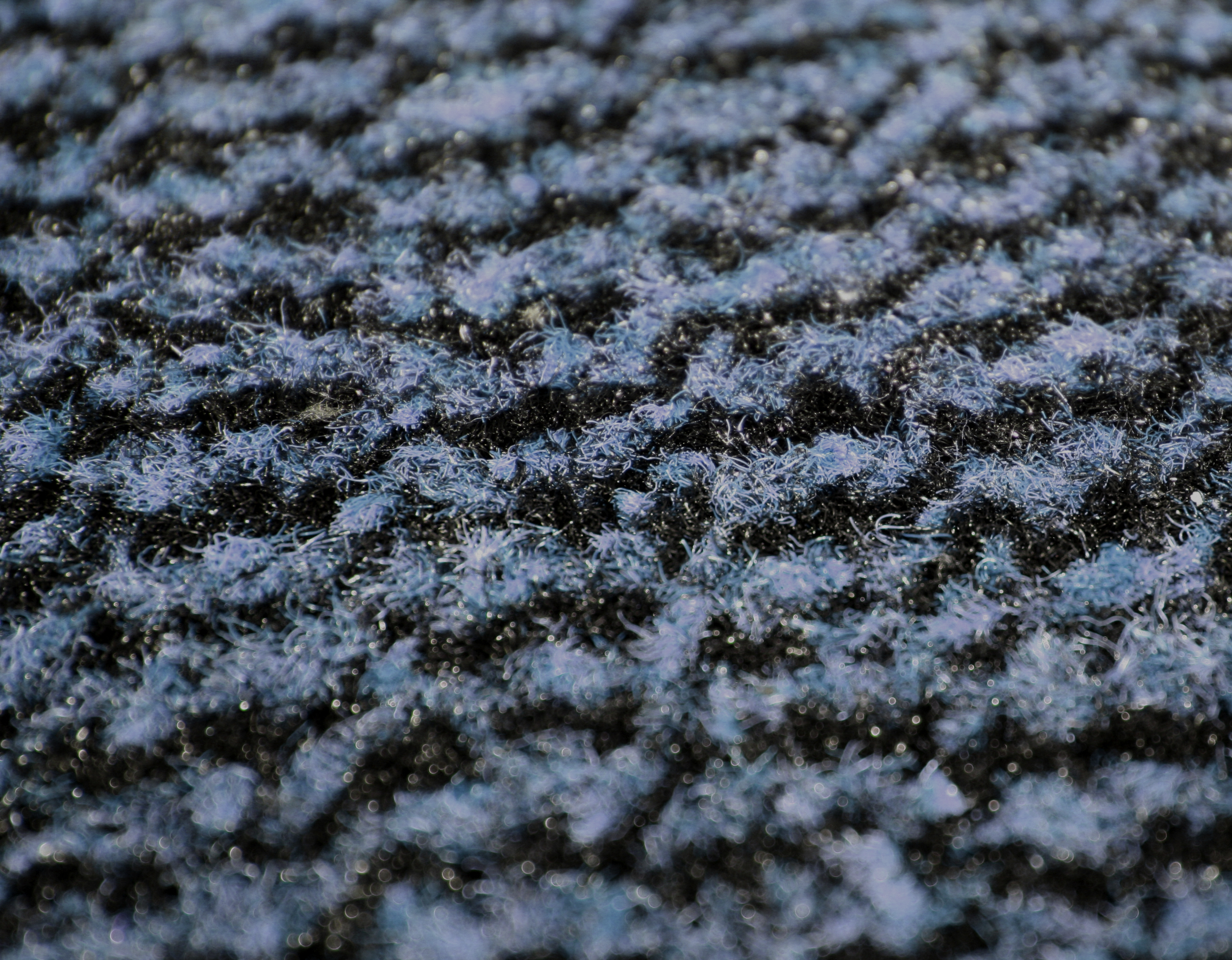 Farverne er meleret og derved ses støv og skidt ikke så tydeligt som på en ensfarvet måtte.